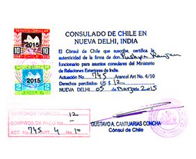 - Attestation from Chile Embassy in Tiruvannamalai ( This final step not required for HCCH Member countries )