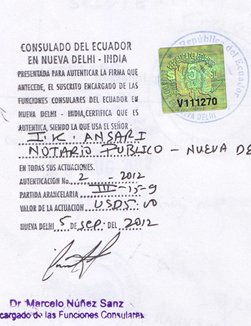 - Attestation from Ecuador Embassy in Mumbai ( This final step not required for HCCH Member countries )