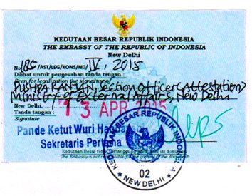 5. Attestation from Indonesia Embassy in Mumbai ( This final step not required for HCCH Member countries )