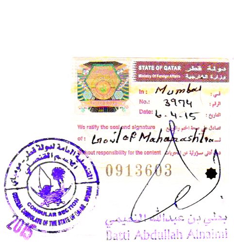 - Attestation from Qatar Embassy in Mumbai ( This final step not required for HCCH Member countries )